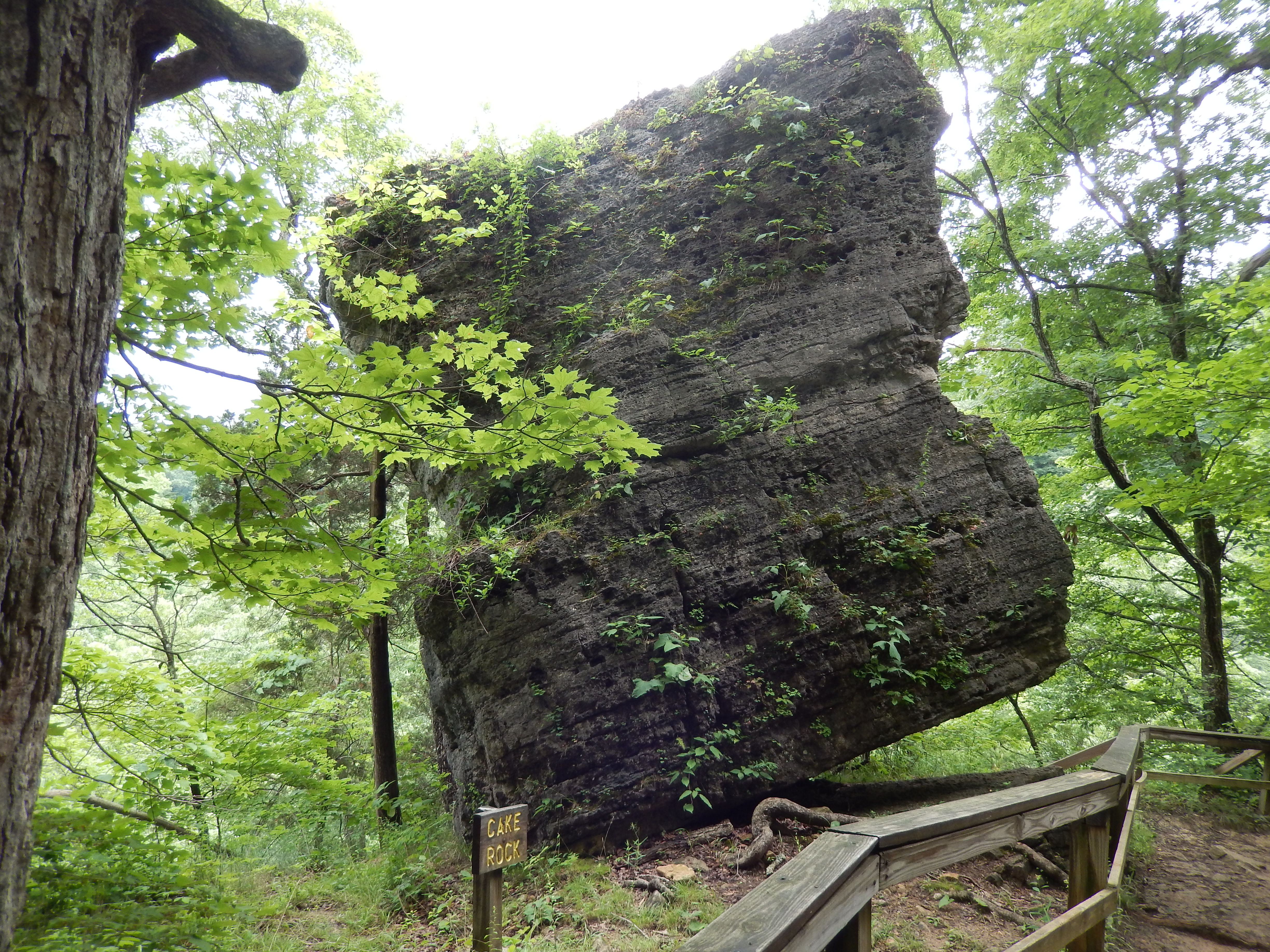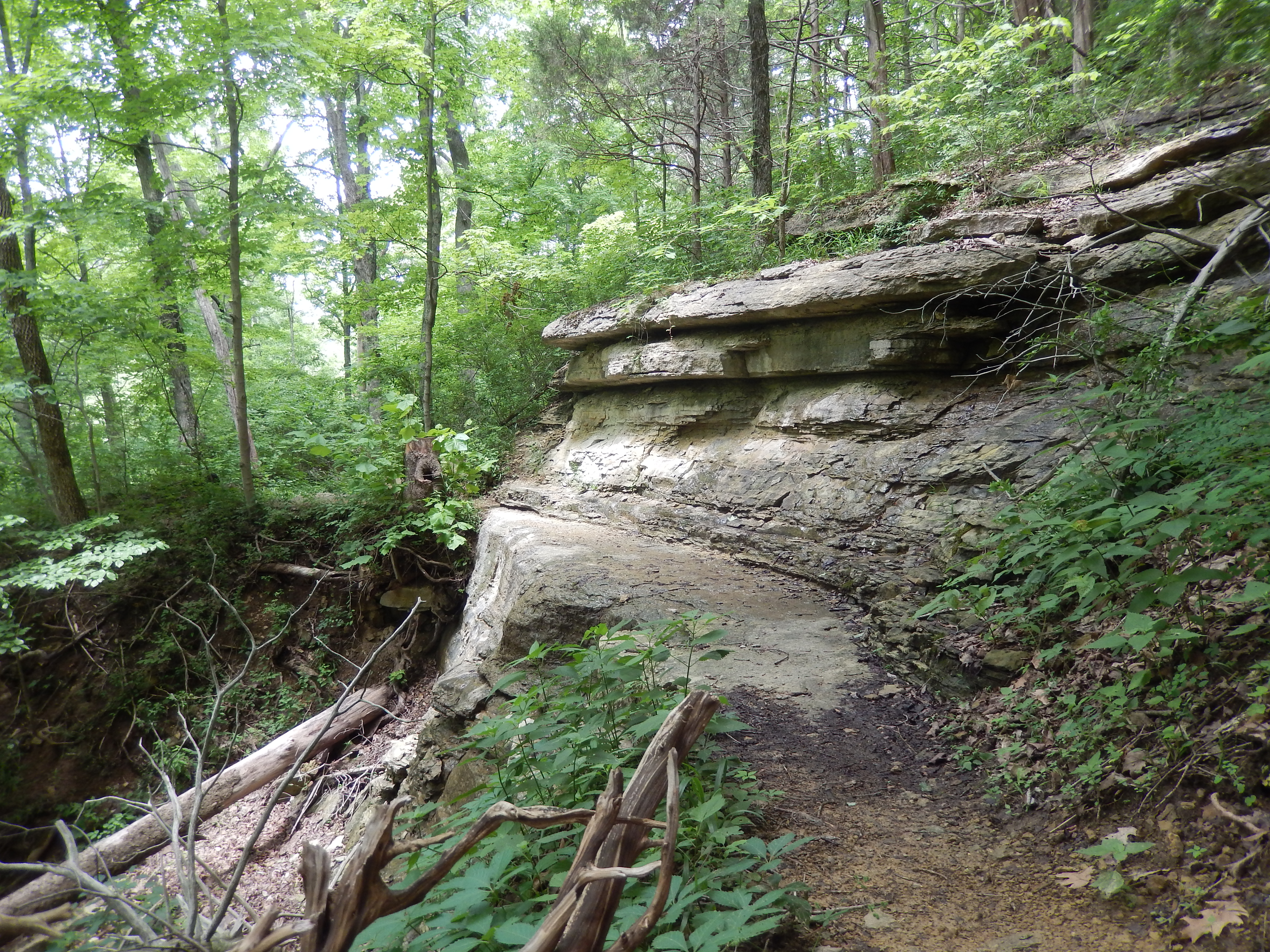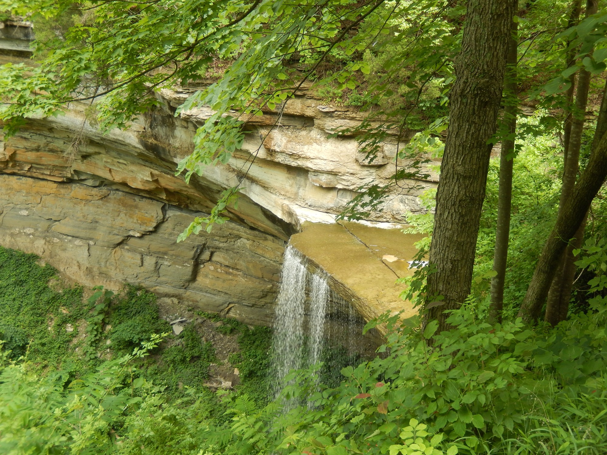 The best thing about Clifty Falls is its fabulous hiking trails. Out of the ten of them, only one is rated “easy”, one is “moderate”, and the rest range from “moderately rugged” to “very rugged”. During the five days we were there, it rained on and off each day. Then the sun would come out and we would hike until it started raining again. This was actually very lucky because when it doesn’t rain for several days, the falls slow down to just drips. It was so humid and so hot, but viewing the beautiful falls, foliage, and wild life was worth being soaked in sweat. We saw a fox, several deer, a turtle, a raccoon, a herd of turkeys, a possum, and some kind of little ground hog type animal.
