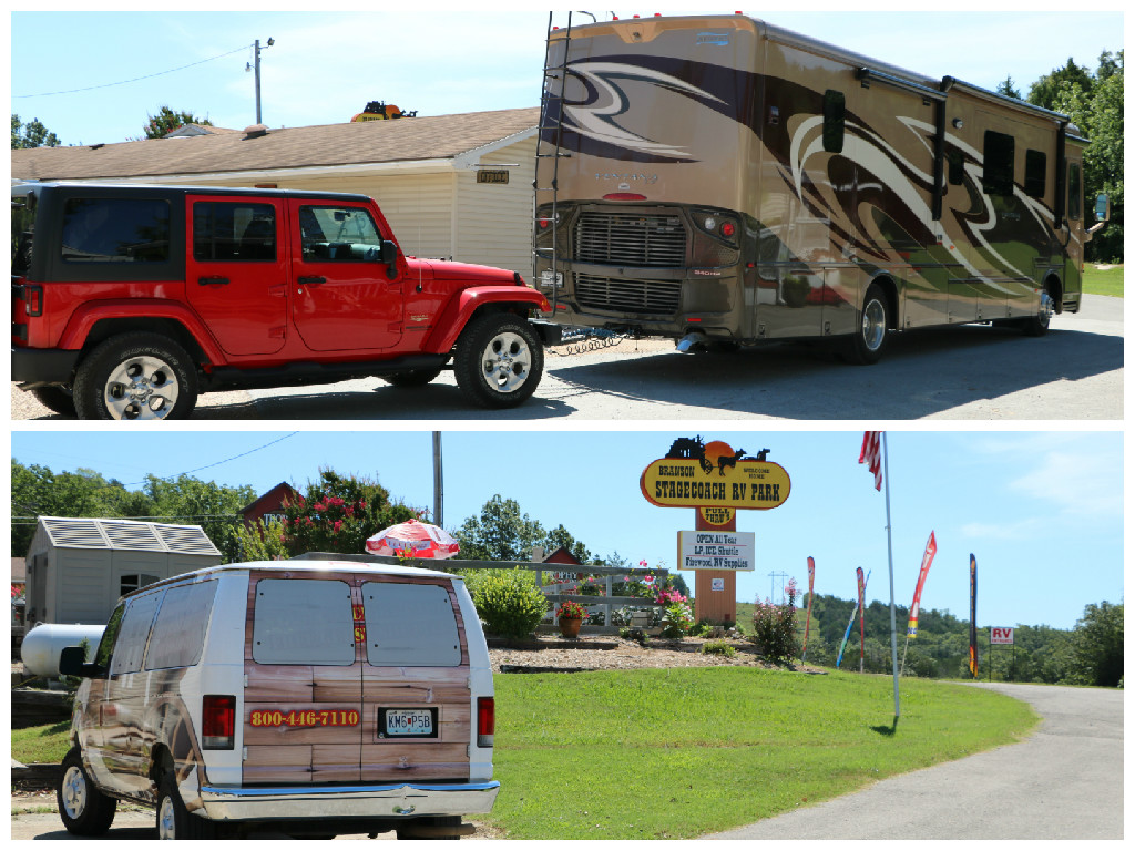 The second half of our Ozark travels was all play and no work. We were ready for a little down time after working hard at camp in the over 90 degree heat and off the chart humidity. We rolled into Stage Coach RV Park in Branson at about 1:00 pm and joined our friends Carla & Jim and Ron & Penny. I could have sworn that Carla, who made the reservations, told me the name of the park was “Chuck Wagon” but a quick text to her verifying we were in the right place put us back on track.
