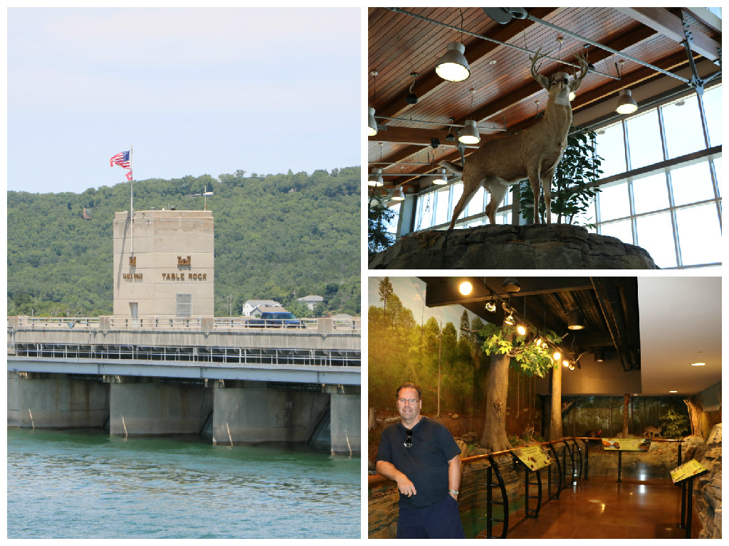 We also enjoyed going to the Dewey Short Visitor’s Center that explains the history of Table Rock Dam. Before the dam was built, the area suffered from terrible flooding. The center has a wonderful nature display that includes the pelts of many animals such as possum, fox, mink, beaver, etc. A guide was leading a group of small children in a game of “guess which animal this fur is from”. One unruly little three year old kept hitting the interpreter with his pelt of choice until the embarrassed mom ran up and grabbed him. I found it amusing, but the mom did not.