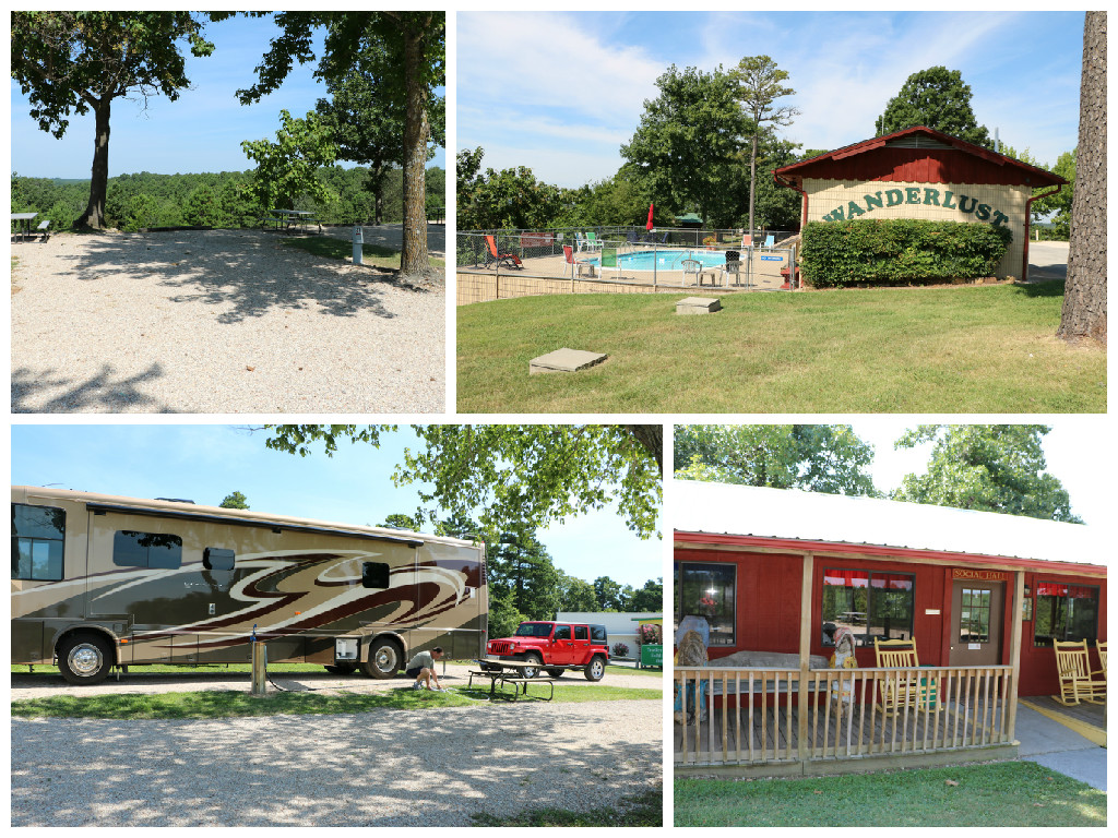 While we were in Eureka Springs, we stayed at Wanderlust RV Park. The view was great, the pool was nice, but the sites were ridiculously small. If we had wanted to cook out and sit at the picnic table that was situated on just a ribbon of grass, we would have been looking right into our neighbors sewer hookups. Ewww! I guess the idea is that you would be busy in town, and not spend too much time at the site.