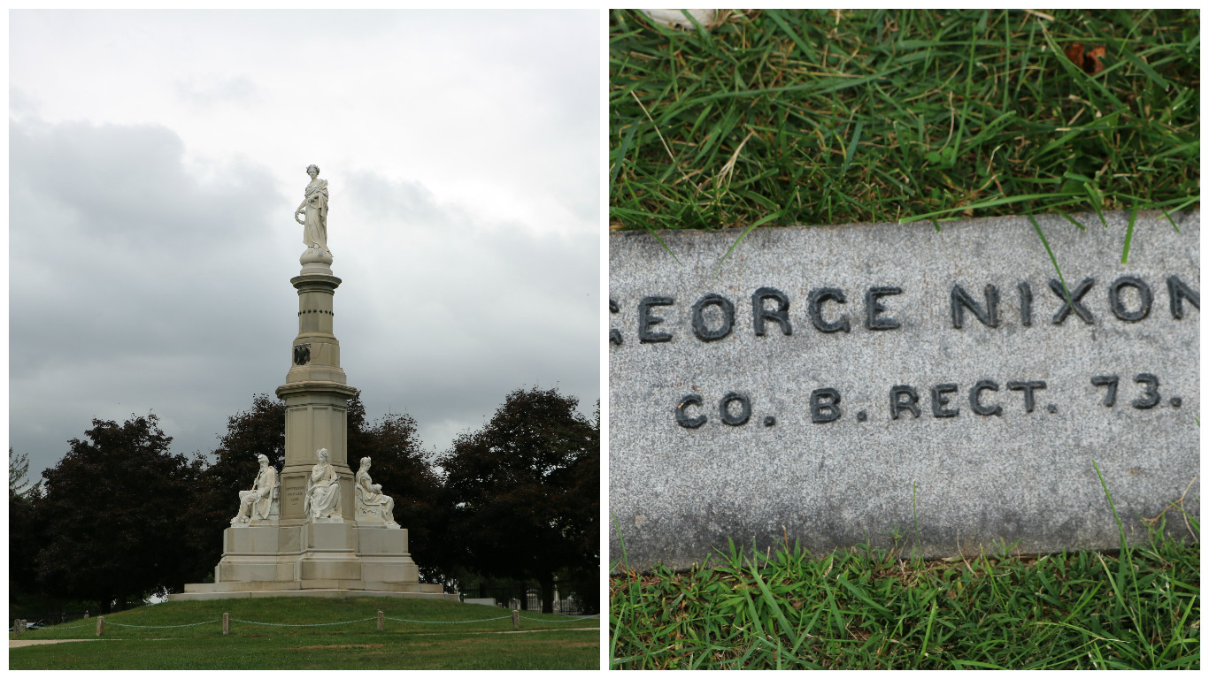 Most of the graves in the Gettysburg cemetery are flat and are laid out in a circle surrounding the monument on the above left. The park ranger pointed out the ancestor of Tricky Dick Nixon. Although Nixon’s mother’s family were Quakers, his father’s side was not.