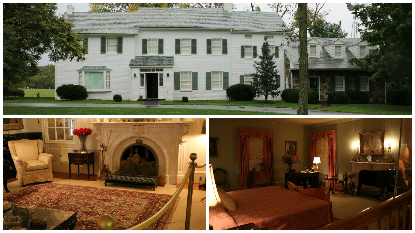 We boarded a bus at the Gettysburg visitor’s center and took a short ride to the Eisenhower National Historic Site. President Eisenhower and his wife Mamie bought the farm and used it as a get-away while he was president as well as afterwards. Mamie loved pink! She had it all over the house – especially in the master bedroom. She said that once a women reached the age of 50, she earned the right to stay in bed everyday until noon. Ha! The photo on the lower left shows a coffee table that was a gift from Korea, a rug given to them from the Shah of Iran, and a fireplace mantle that was discarded when President Grant’s wife redecorated the White House. Apparently, Eisenhower was the last president allowed to keep gifts from head of states. According to the guide, almost everything in the house was a gift from somebody, even the pink lighting fixtures.