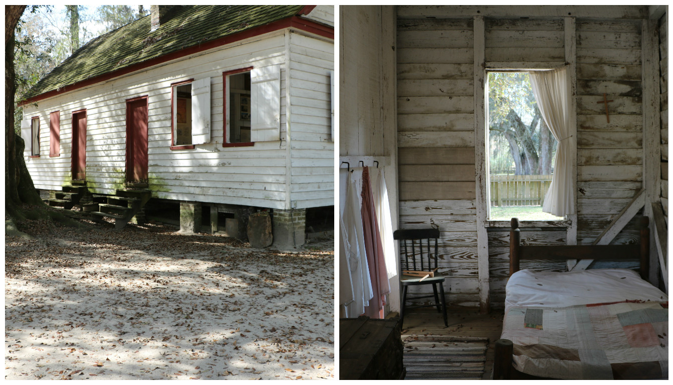 The slave quarters would have been situated away from the house. The cabin above was built by freed slaves and reportedly, they felt like they were living in a palace compared to what they had before. Slave housing would have been build directly on the ground so the floor would have just been dirt.