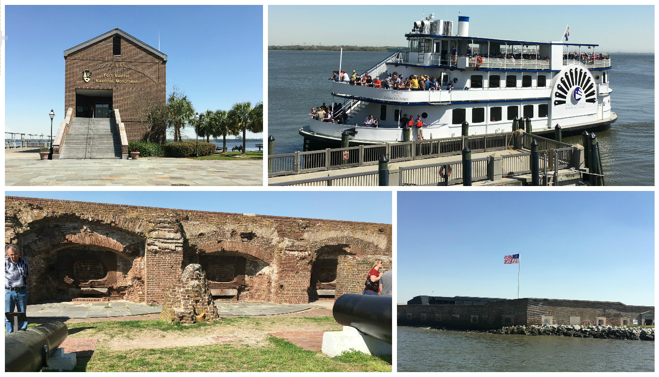 We took another half a day to see Fort Sumter where the Civil War began. Since it sits out in the bay, we took a boat from the downtown departure location on Concord Street in Charleston. There is another departure center in Mount Pleasant. While we were waiting for the boat, we walked around and looked at the displays and artifacts that explained the events that led up to the war. The boat goes out to the fort about three times a day; our boat left at 2:30 and it took about a half hour to reach the island. The last boat that returns to Charleston leaves at 4:00, but an hour is plenty of time to wander around and see the museum inside.