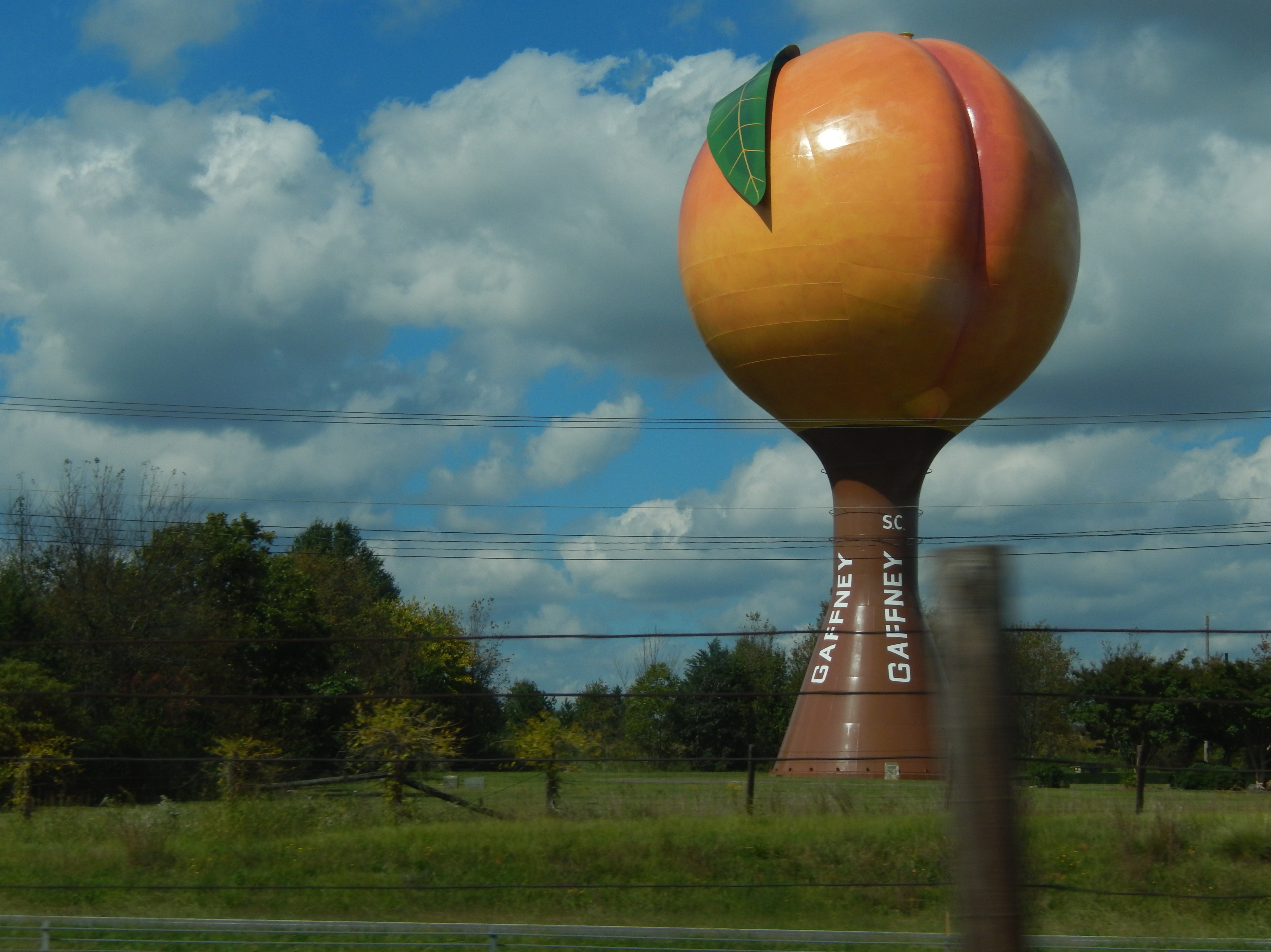 The Peachoid is actually a water tower and was designed to celebrate the surrounding county’s huge peach farming industry. It became nationally known when it was featured in an episode of House of Cards where it became part of a political battle in main character Frank Underwood’s hometown of Gaffney. I found it a cheerful sight because it sits on Interstate 85 right by the Gaffney Premium Outlets . I was surprised a small town had such a nice outlet mall with several high end type stores. I took advantage of a great deal at Ann Taylor: buy one dress, get one free.