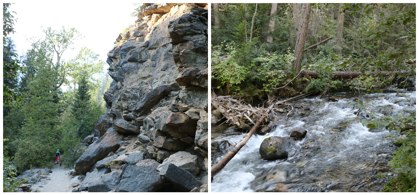 Palisade Falls and the Hyalite Recreation Area are located just a short drive out of Bozeman. The area has hiking, camping, and absolutely breathtaking scenery! The falls had that same “spaghetti squash” look I saw at Devil’s Tower, Wyoming (when we veered into Wyoming on our South Dakota trip) – so I wonder if the geology is similar? It was 106 degrees when we hiked around Devil’s Tower but as we walked the easy trail to Palisade Falls we wished we had worn jackets. However, the beauty around me was striking and that’s when I first began to realize how wonderful Montana is.