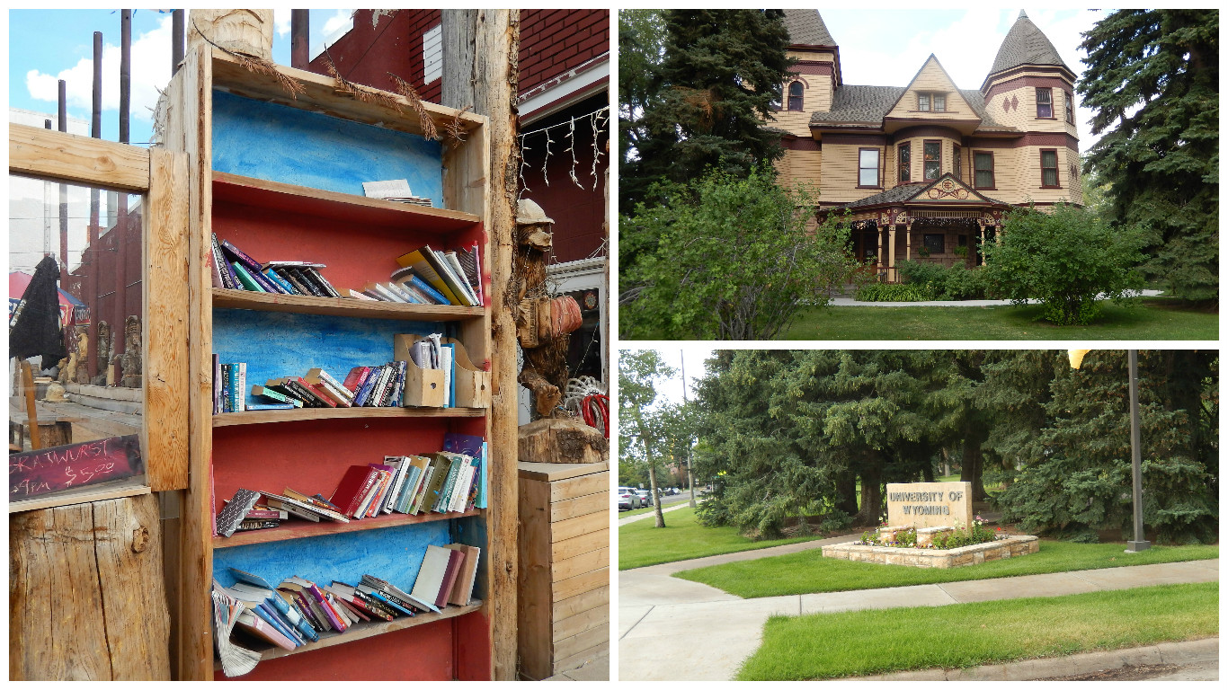 Laramie is home to the University of Wyoming so the downtown area had that college town feeling only with a western vibe. One interesting place was The Cowboy Bar. It had a huge patio made of reclaimed wood and a book trading station. While we were looking at it, the very friendly owner came out and explained it was really a German restaurant, but he was required to keep the signage and name to comply with the town’s historic status.