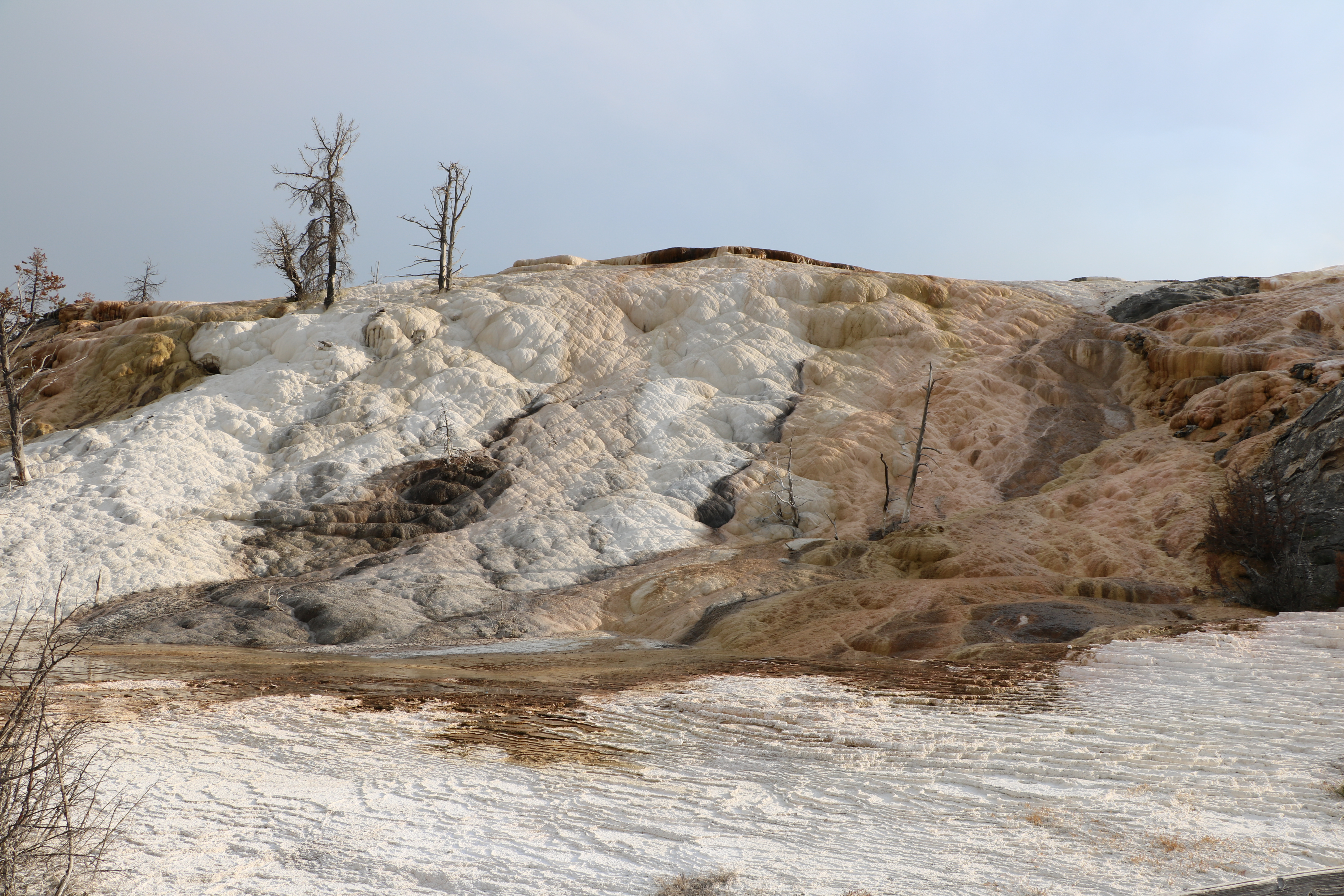 That’s not snow on the ground in the photo above. This is the beginning of the trail through the Minerva Terrace.