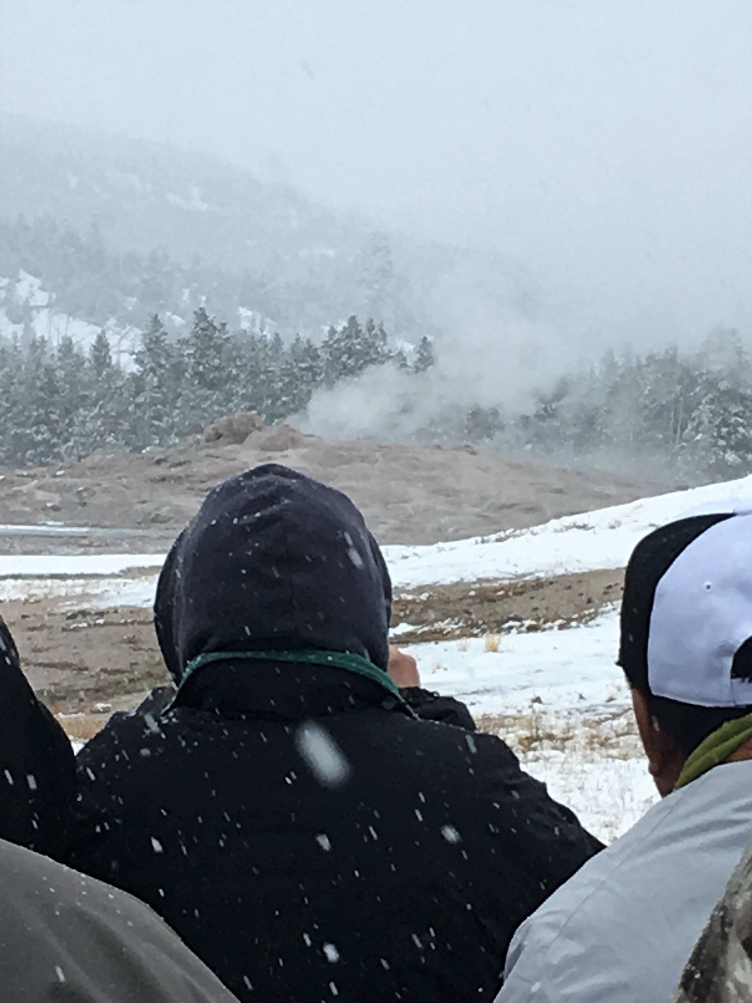 The temperatures hovering around 30 degrees didn’t stop people from lining up to view Old Faithful either!