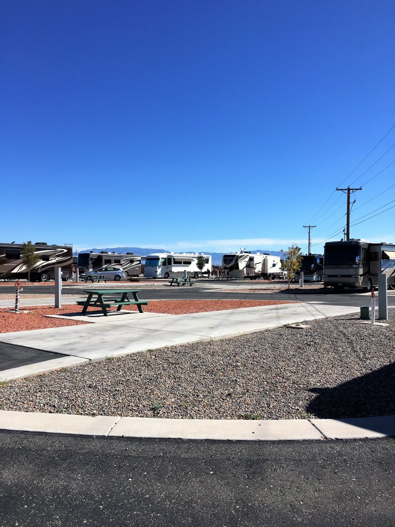 From Albuquerque we went to Santa Fe and parked at Trailer Ranch. It was adequate, with its adobe buildings it felt like New Mexico, but they had signs everywhere that dogs were not allowed on any grassy areas. There was a tiny strip of sand across the road in front of our site where I could take Vanilla and also a dog park way in the back of the park. The thing I can never understand is that if you have a big dog you can’t pick up and carry, then it might be hard to stop them from going on the way to the dog park. I guess they must be trained really well and perhaps it becomes a mad dash to where a dog’s allowed to be.