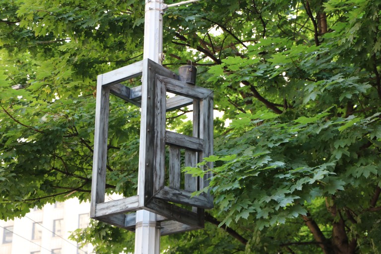 This street art commemorates the Great Seattle Fire of 1889 that destroyed 25 blocks in the business district. It was started by some glue that ignited in a cabinet shop. As a result of the fire, the rebuilding was constructed 22 feet higher and there is an underground level of the old 1800 facades.
