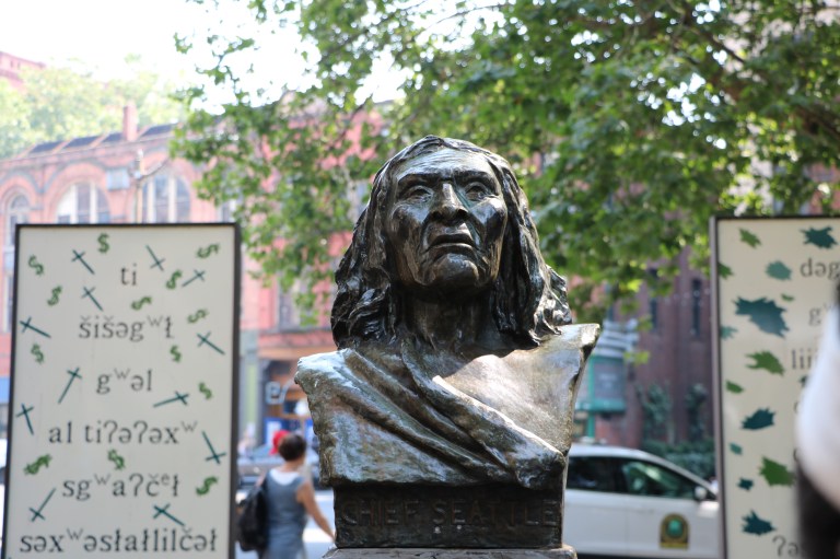 Also in Pioneer Square is a bust of Chief Seattle who was the leader of the Suquamish tribe. History says he got along with the first settlers very well.