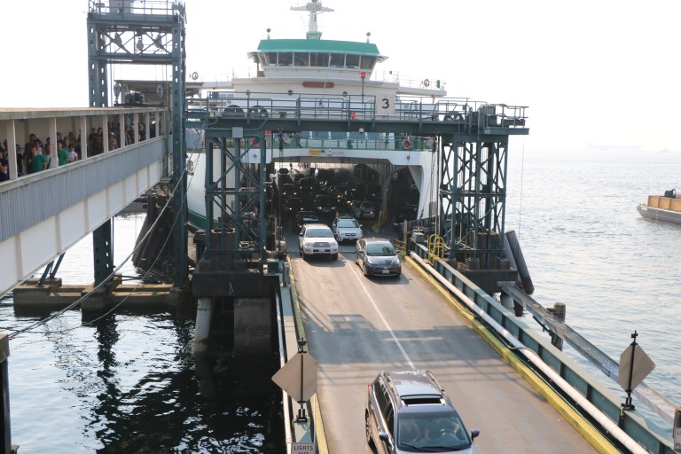 The ferry holds cars on the bottom and it looked like lots of commuters on bikes as well.
