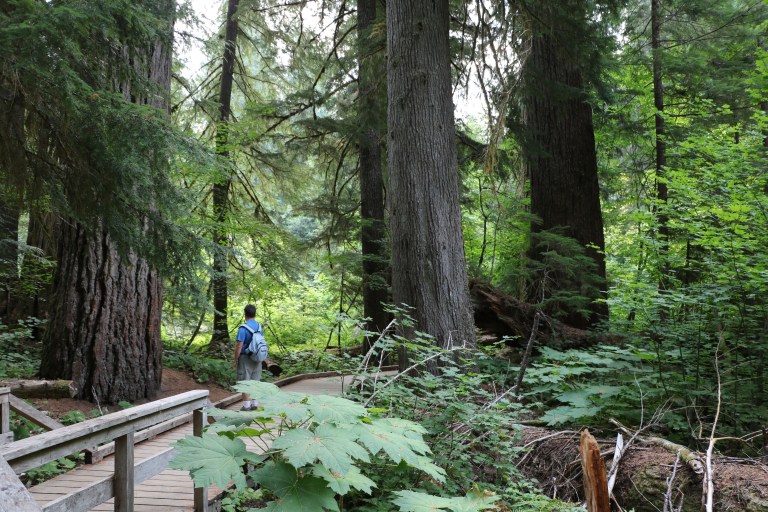 Mt. Rainier National Park has a plethora of hiking trails around the different park areas. People must register if they wish to go on an overnight/camping hike, but it’s not necessary for the short day hikes. We entered the park at the Stevens Canyon Station and found ourselves right by the trail head for the Grove of the Patriarchs Trail.