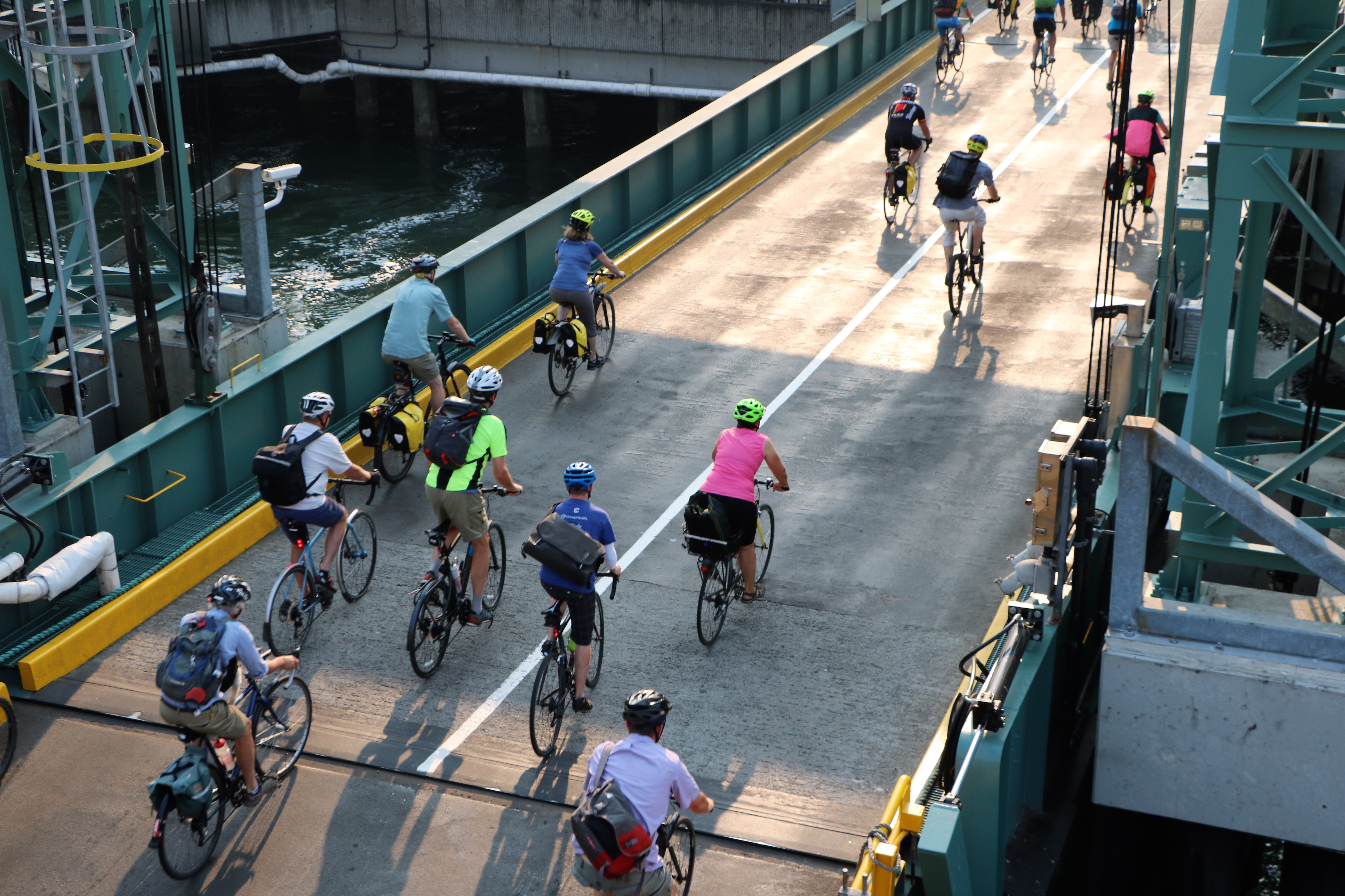 The ferry holds cars on the bottom and it looked like lots of commuters on bikes as well.
