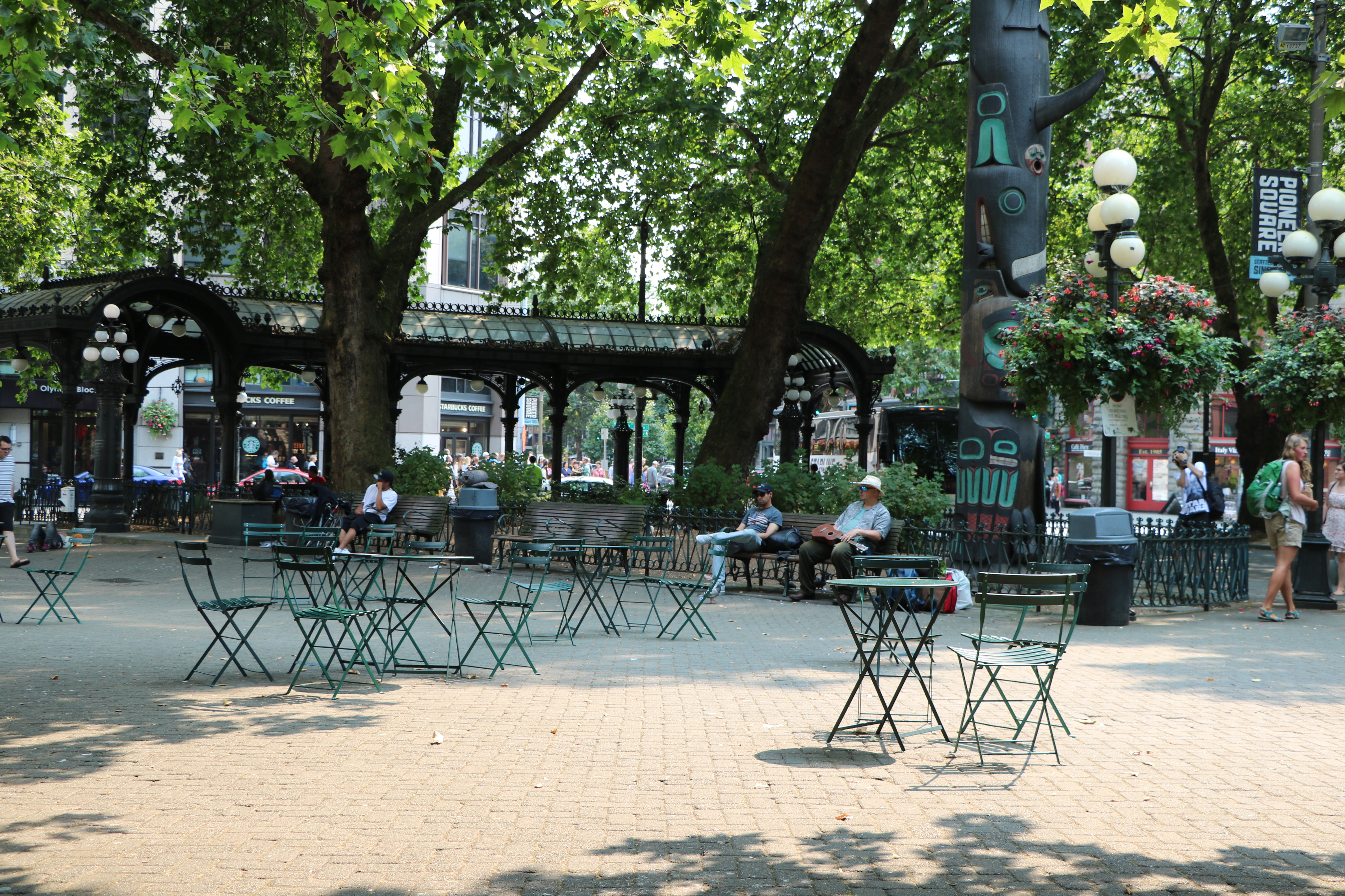 The totem pole in Pioneer Square has a colorful history. It is believed that it was stolen from Native Americans in Alaska and brought to Seattle by 15 businessmen in 1897.