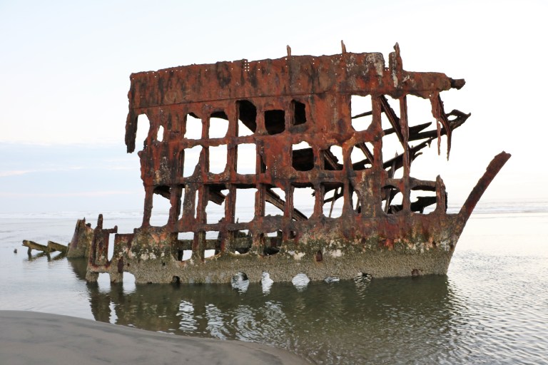 About five minutes from the campground is Fort Stevens State Park. On the beach is the Peter Iredale, a ship wreck that ran ashore in 1906. It has slowly been deteriorating ever since.