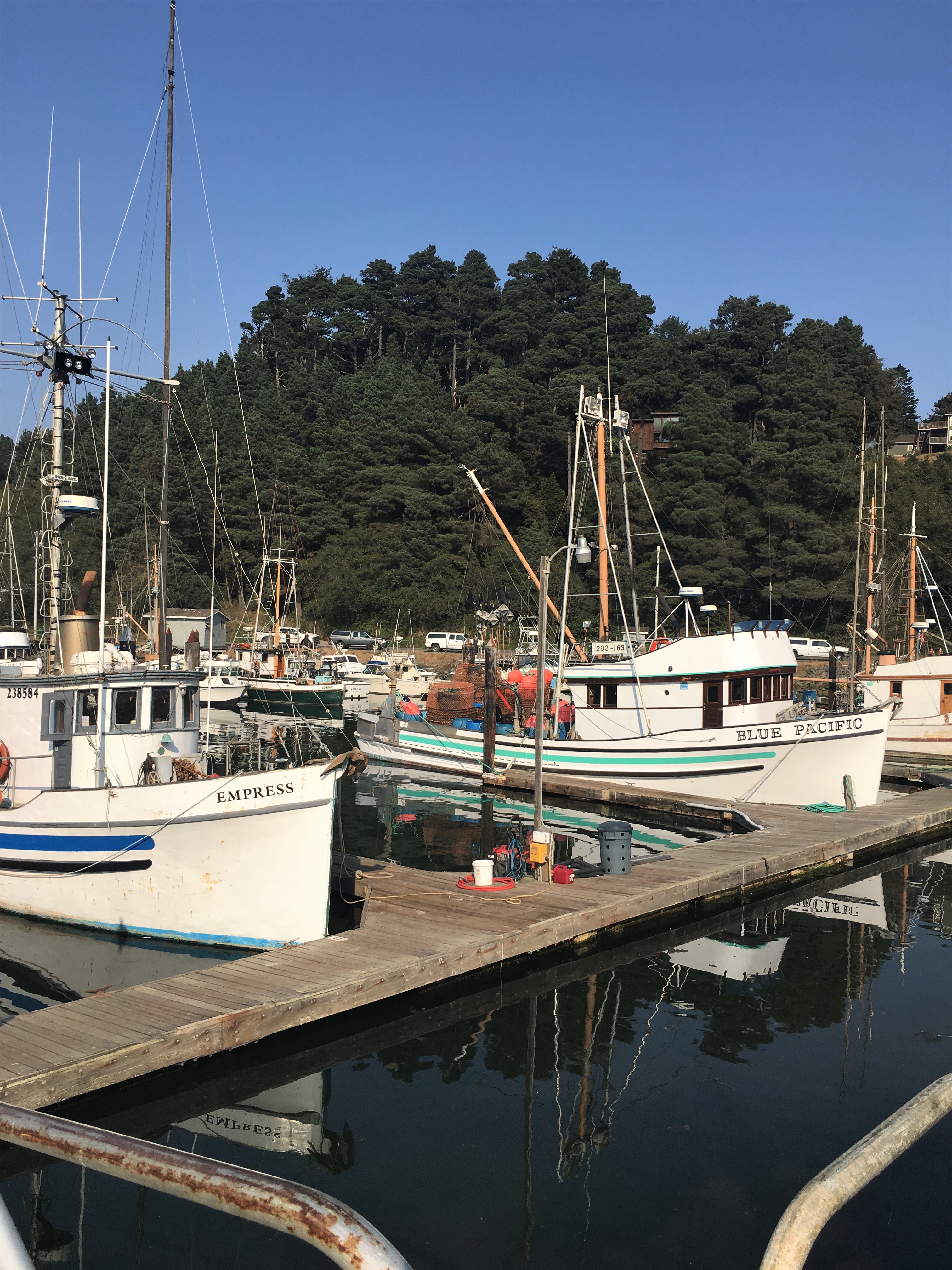 We slowed down over Labor Day Weekend and stayed in the RV Park at Dolphin Isle Marina in Fort Bragg for a few days. A road that snakes around the docked boats leads to place where the RVs are parked. It was slightly confusing at first and very narrow, but we figured it out. The sites were adequate; it was basically a somewhat grassy space with people who seemed to park there for extended periods.