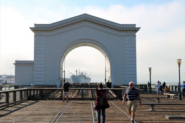 On Pier 43 there is the Ferry Arch which is all that remains of a ferry terminal used by prisoners going to Alcatraz as well as an off loading point for lumber, livestock, wine, dairy and grain that would be put onto trains and distributed.