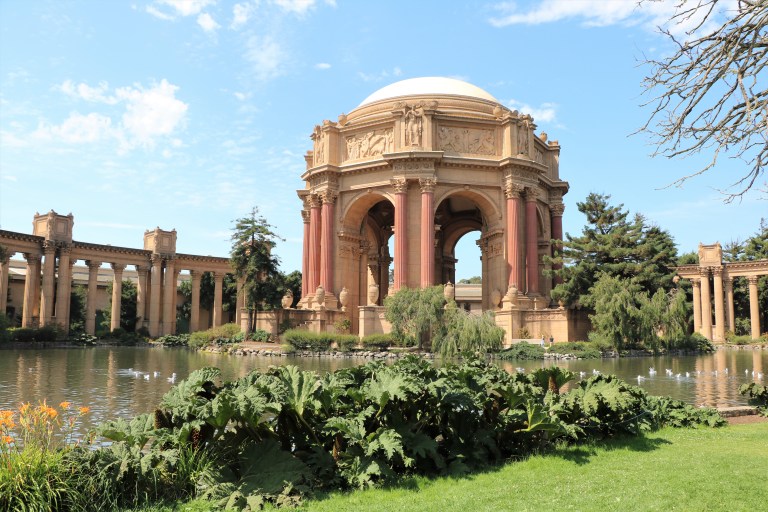 We began our last San Francisco day by driving to the grounds of the Palace of Fine Arts. This structure was built in 1915 for the Panama-Pacific International Exposition. Notice how nice and sunny it was.