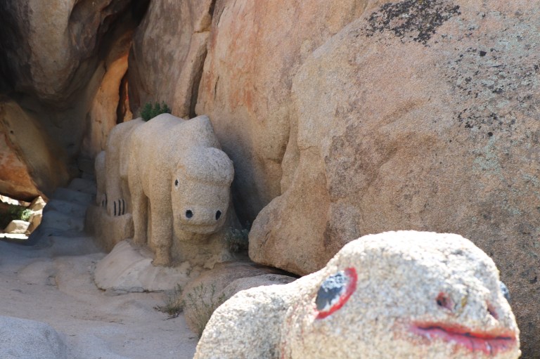 The “ticket” also allows visitors to walk around Boulder Park that is just outside the tower. During the depression, animals were carved out of the rocks and there is a rough hike that winds through them all.