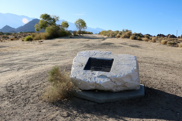 This plaque along Movie Road going through Alabama Hills just outside of Lone Pine, marks Movie Flats where films and TV series were shot.