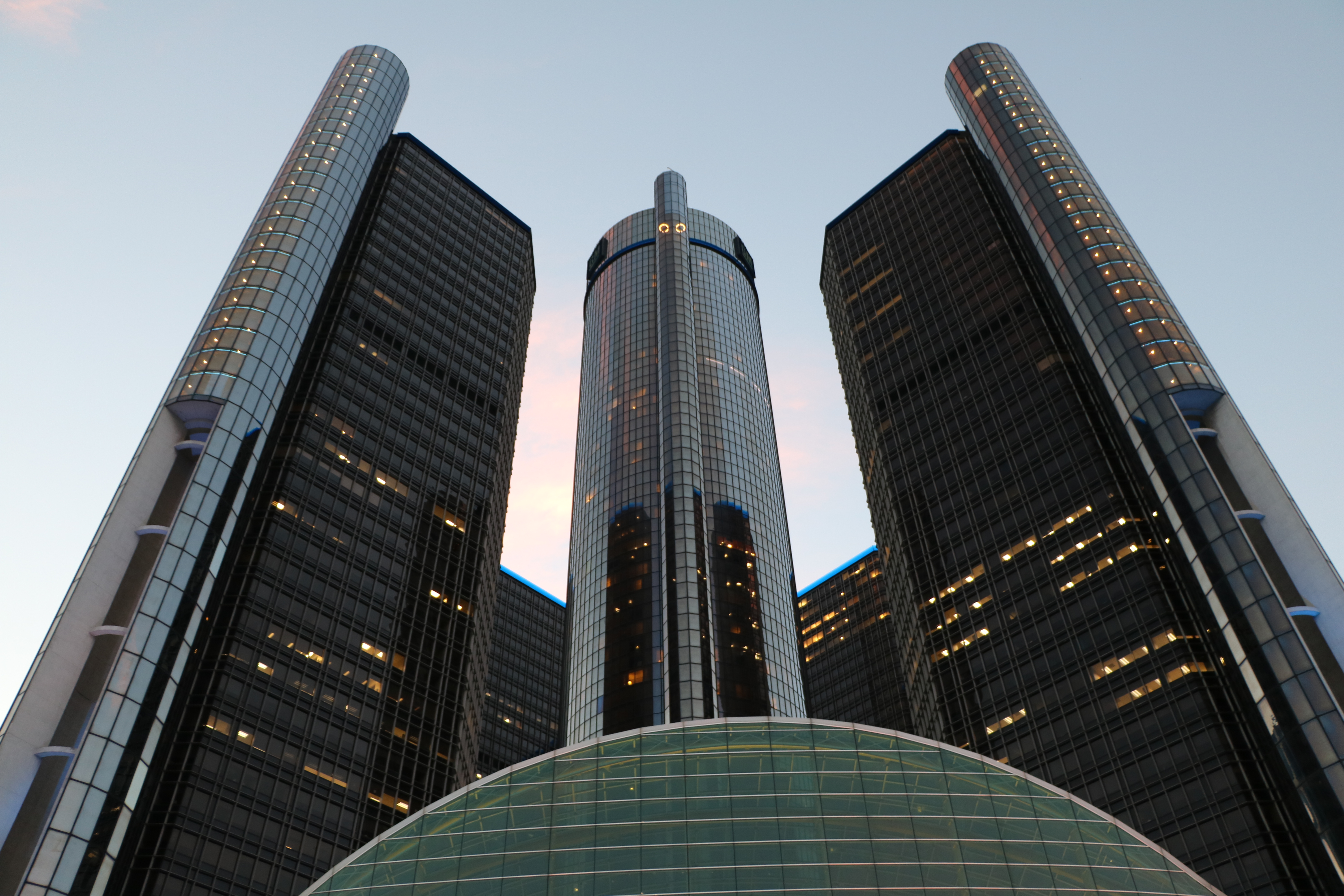 We ate dinner at a restaurant inside the General Motor Renaissance Center which is right across from the riverfront walkway.