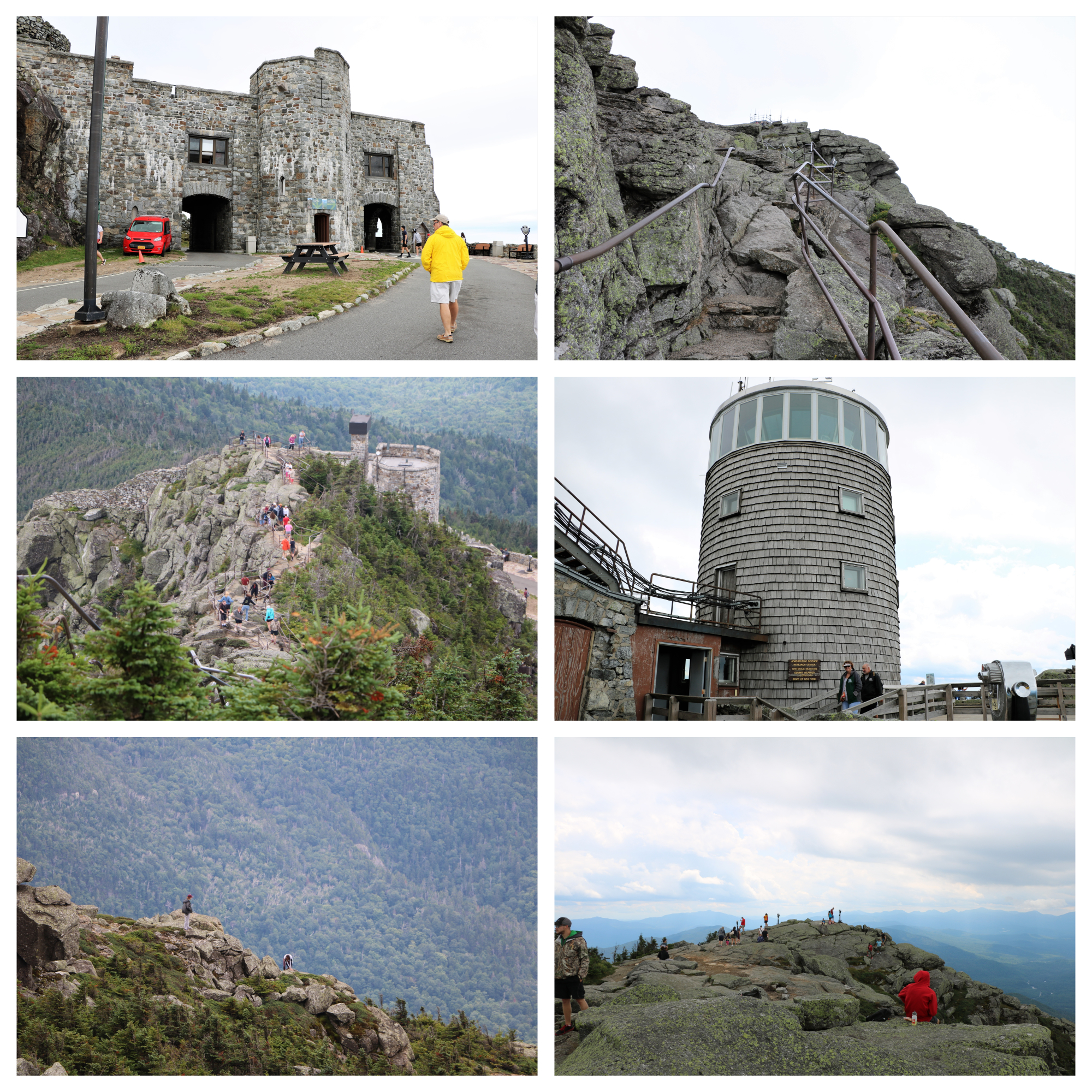 At the base of the final climb, there is a “castle” that has a coffee shop that serves hot chocolate among other things. It does a great business because it’s windy and chilly up at the top! The summit is the location of an atmospheric research center for the state of New York.