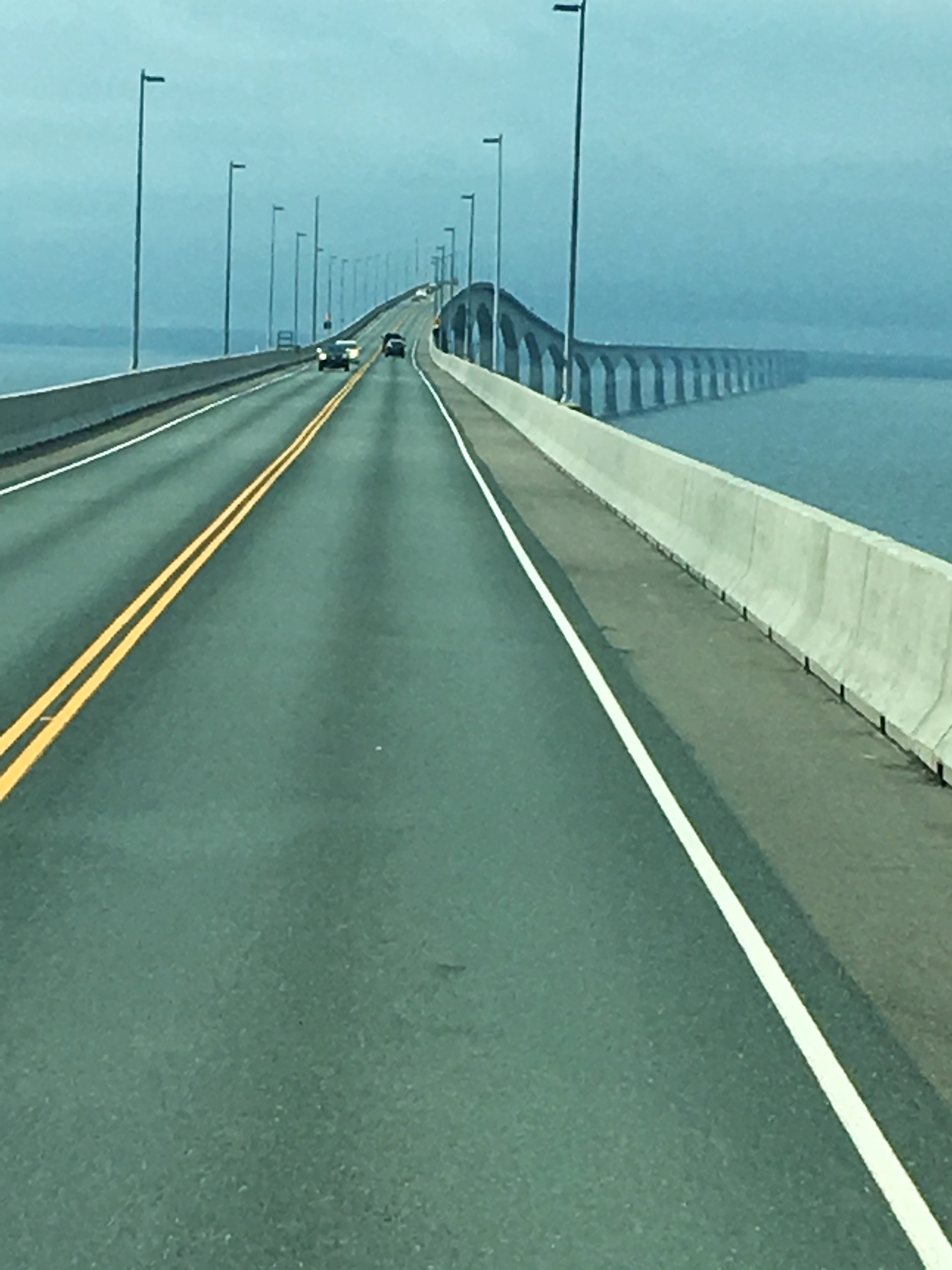 When we left Prince Edward Island we used the Confederation Bridge and traveled into New Brunswick and then entered the U.S. at Houlton, Maine. We were a bit nervous about the bridge since the RV is considered to be a “high profile vechicle” ; wind speeds are updated every six minutes and it’s nearly 8 miles long. It was a rainy day, but we traveled across it easily.