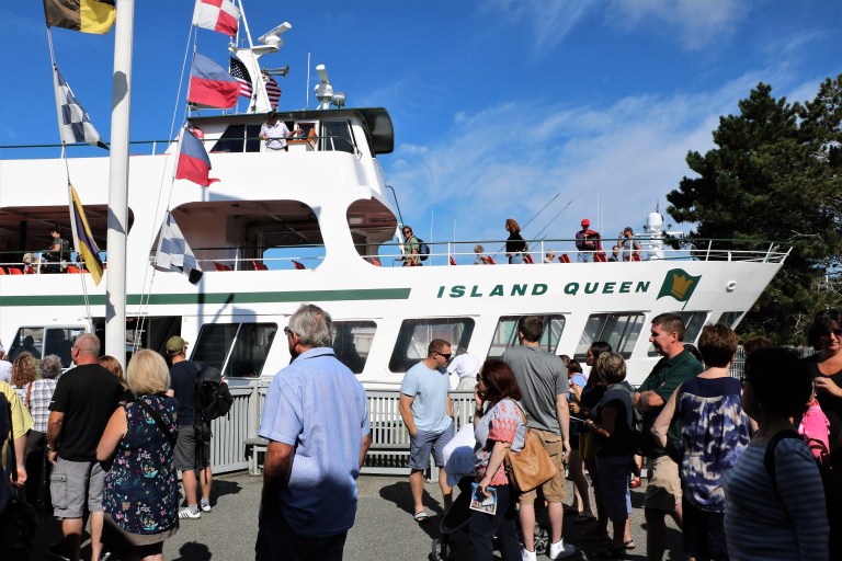 We finished our bike ride at Oak Bluffs Marina where the ferry goes in and out from. Before we got on the boat for the return trip, we ate a Lookout Tavern I’m mentioning it because I had the most wonderful lobster bisque there! In fact, everything we ate there was great – a pleasant surprise because I thought it would be just average touristy bar type food.
