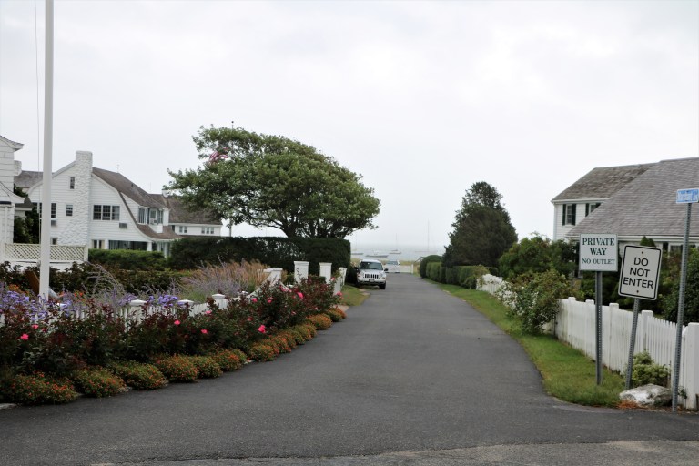 The weather the next day was gray and rainy, so Bob took us on a “wind shield” tour. This is as close as we got to the Kennedy Compound in Hyannis Port. The three houses were big, but not as grand as I expected. They sit on six acres total and apparently there is quite a lot of shore line on the property. I’m pretty sure that car sitting in the lane must be a security guard.
