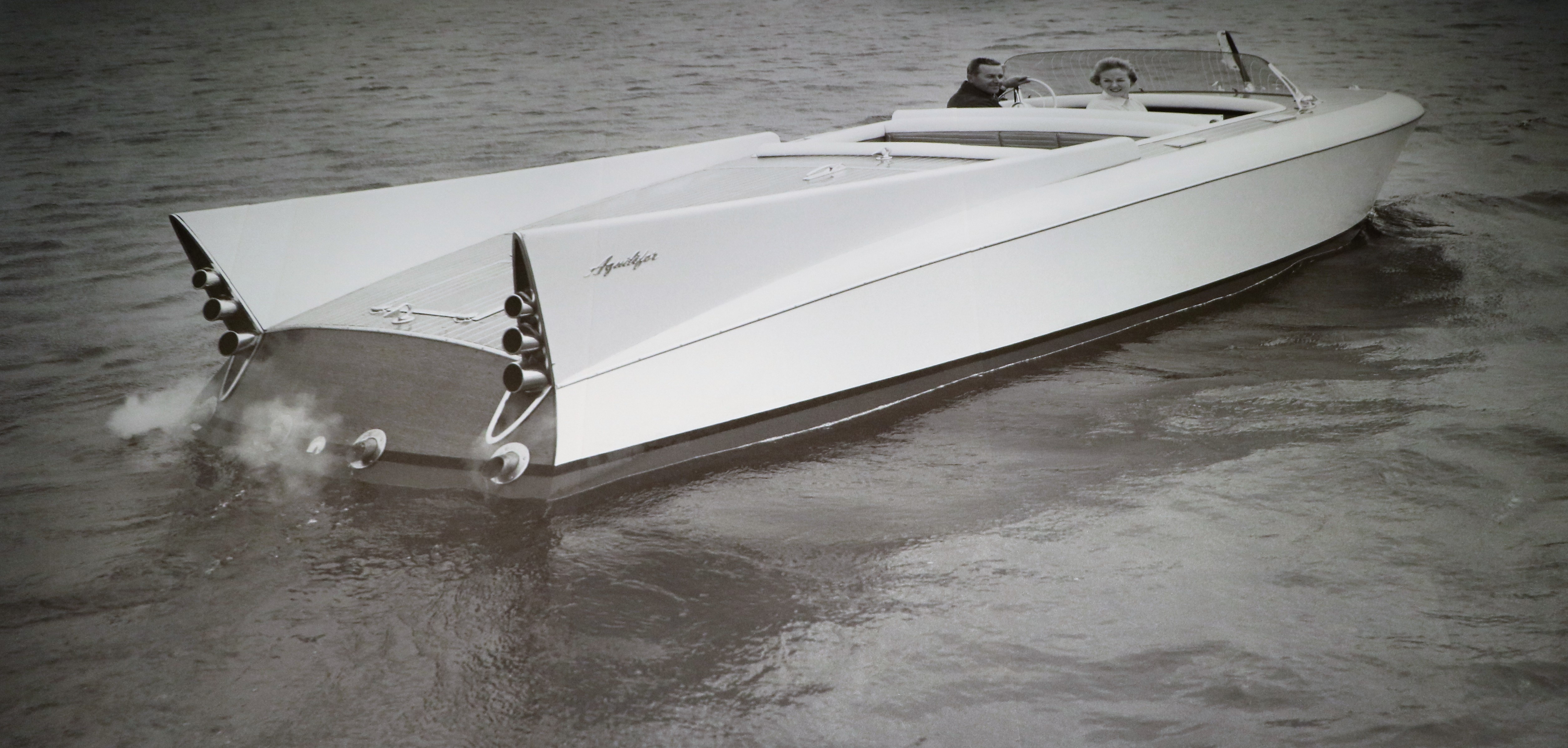 According to the exhibit, the word “streamlining” started in the boat building business. Streamlining meant building things such as boats, cars and even kitchen goods in a way that mimicked the horizontal speed lines of air craft.