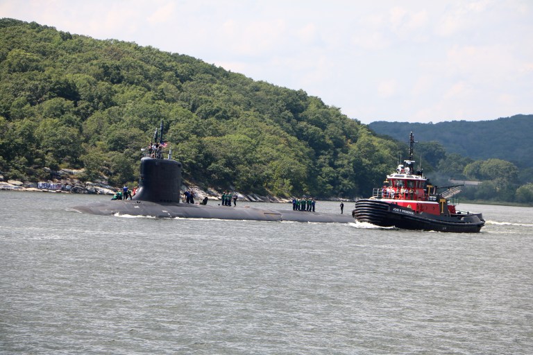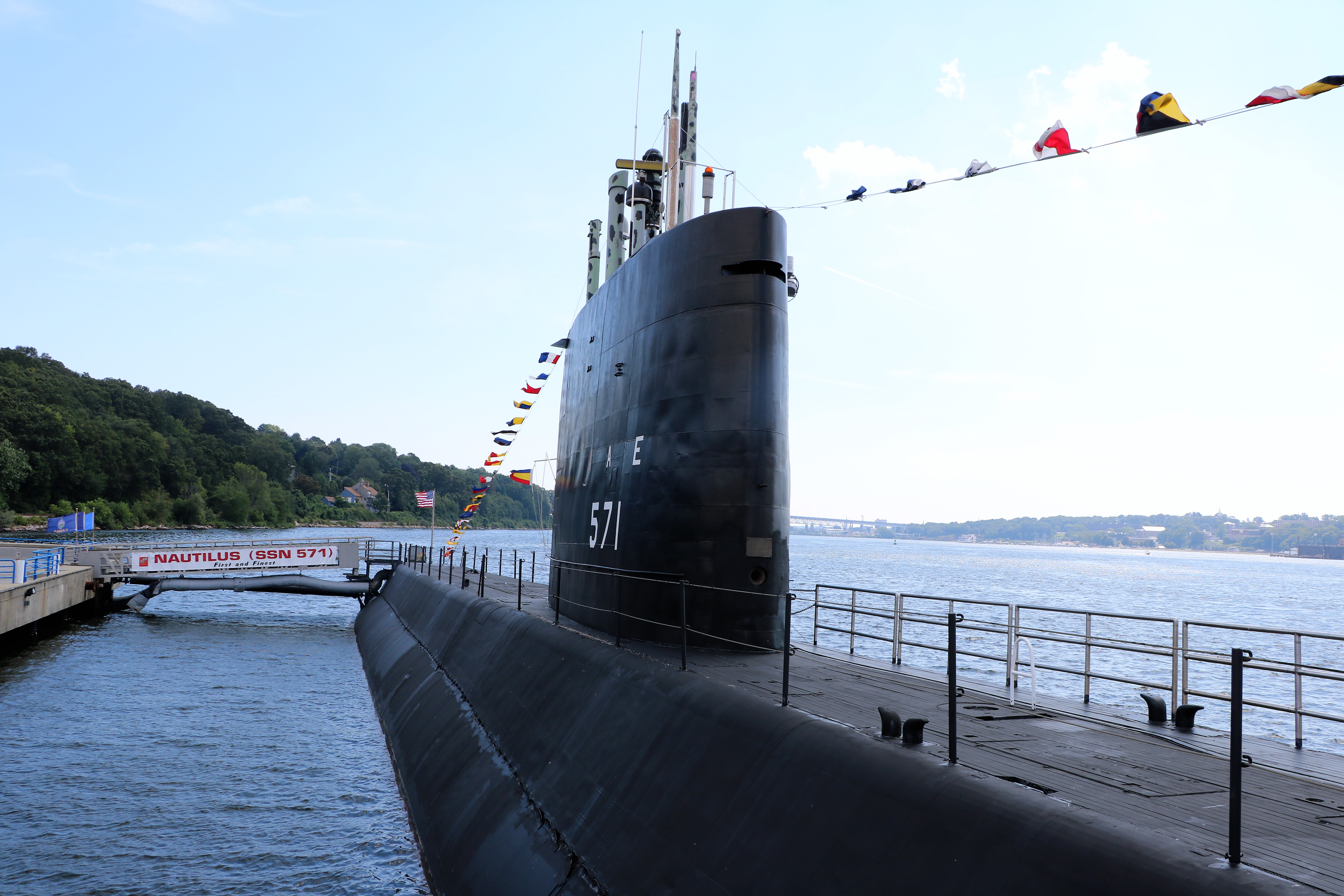 Almost as soon as we got there, they announced that a submarine was leaving the nearby Naval Submarine Base New London. Everyone rushed out to see it pass by and head out to sea.
