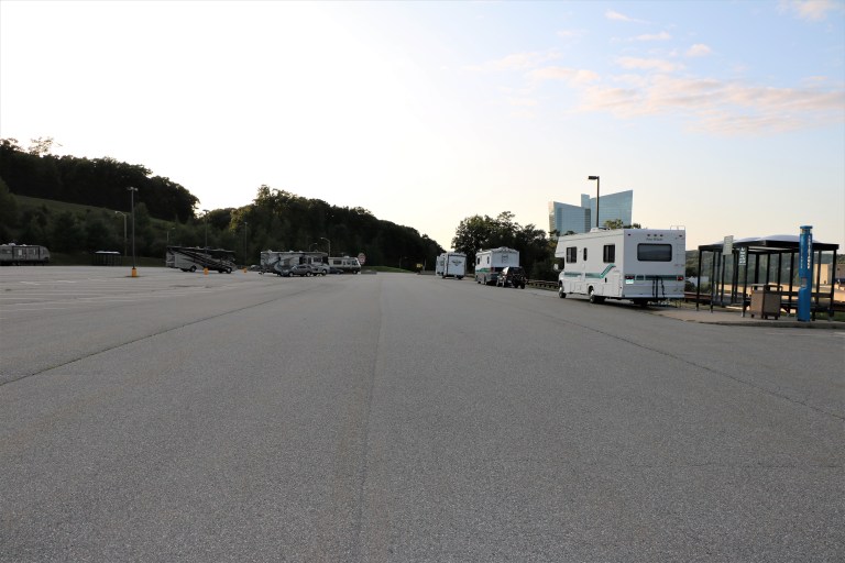 We had a weekend to kill before our reservations on Cape Cod began. Out of curiosity, we went to the FREE RV parking at the Mohegan Sun Casino in Uncasville. All someone needs to do is call the number given on posted signs and security comes to register you and your RV, Every 15 minutes, a shuttle drives by to whisk anyone over to the casino.