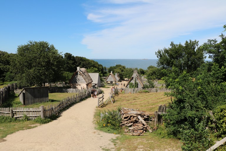 Another piece of the outdoor exhibits is the Wampanoag village. It’s staffed with people that are all of Native American heritage. They answer questions from a modern perspective but are dressed in historically accurate deer skin clothing.