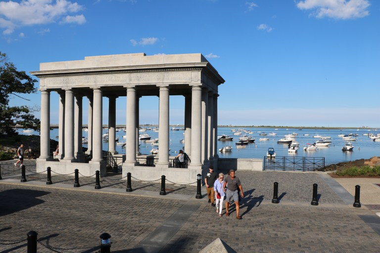 So, Plymouth Rock is known as the site where the Pilgrims disembarked the Mayflower in 1620. But – it turns out it doesn’t appear in any historical writings until 1715 and then it’s referred to as a great rock in the town boundary records. It wasn’t until 1741 that it started to be written about and became a symbol of the spirit of the people who first colonized new England. Today, it’s enclosed within the structure above to protected from people who want to break pieces of it off.